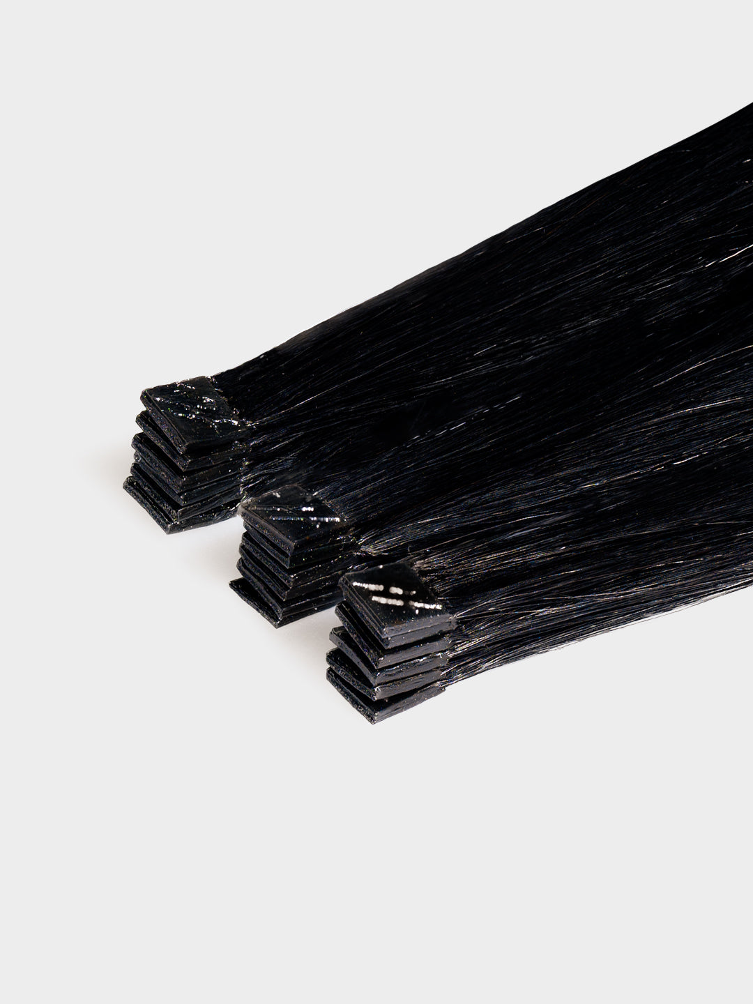 For a medium hair volume, you’ll need 8 - 13 packs, corresponding to 80 - 130 strands or to a hair volume of 64 - 104 g. Suitable for a full hair extension.
