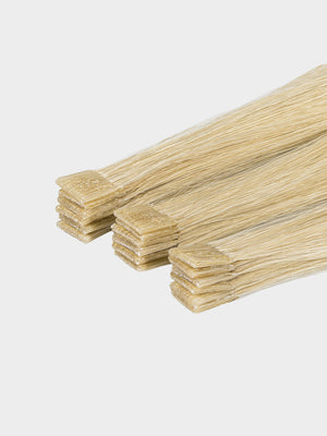 For a medium hair volume, you’ll need 8 - 13 packs, corresponding to 80 - 130 strands or to a hair volume of 64 - 104 g. Suitable for a full hair extension.