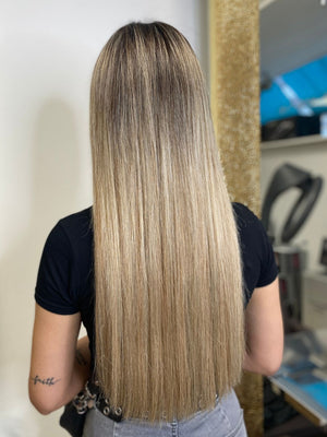 Seamless Clip Extensions - luxury Quality - 9 pieces 120g - 55cm - T18/24 ombre dark natural blonde ash & light ash blonde
