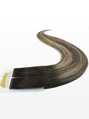 Slim Tape-in Extensions - luxury European / Russian Hair - 50cm - B2/60 balayage dark brown & ash blonde